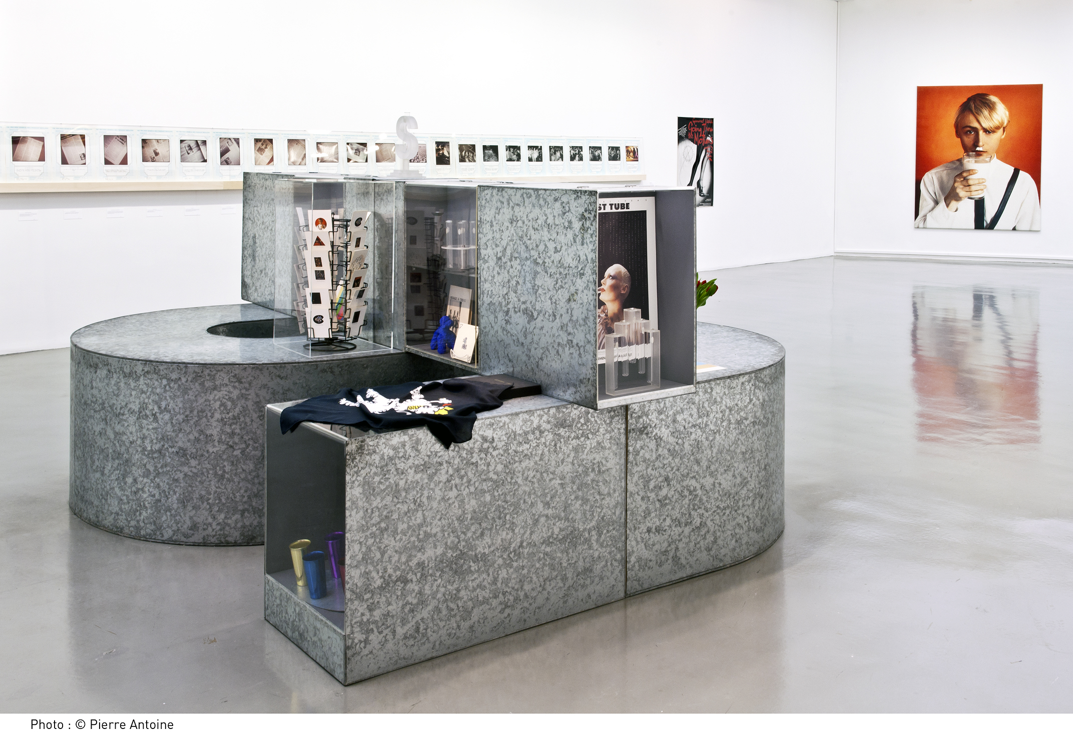 sont neutralisés sous forme de tableaux de pâtes, façon Optical Art, les Pasta Paintings. Le collectif s’empare aussi du sigle du Copyright. Il remet ainsi en cause le statut juridique du droits d’auteur, dans un monde où chacun, volontairement ou non, s’approprie un imaginaire publicitaire et iconographique plus ou moins imposé. Le sigle © est décliné en or et en cuir sur des toiles de lin ou de jean, de dimensions variables, pour illustrer l’absurdité d’une telle réglementation dans un monde technologique de réseaux et de reproductions à l’infini. Inversement, un comptoir en zinc, en forme de $, propose une gamme de gadgets utiles et décoratifs, des multiples, des copies. Du porte-clefs au mug, en passant par la presse, tout est à vendre et à acheter. Une gadgettisation de la culture déjà utilisée par les grandes structures institutionnelles telles que le Moma.