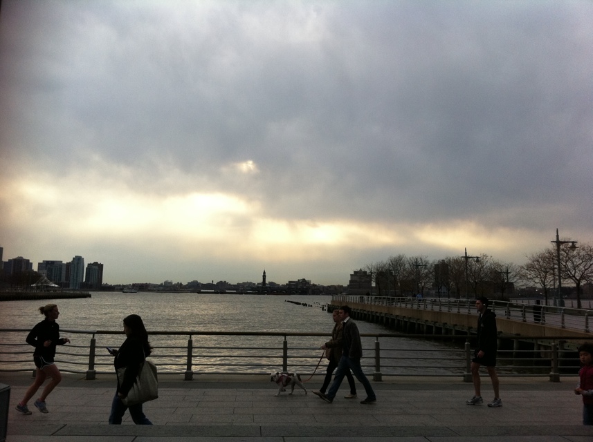 Ça y est je marche aussi en tenant un gobelet en carton. Il y a quelque chose dans l air ici qui te pousse à la marche, on s’assoit sur un banc, le temps de reposer ses jambes. Et très vite on repart : « attract by » quelque chose qui va arriver. Là juste après cette rue. Est-ce-que demain je vais aussi courir sur les bords de l’Hudson ?