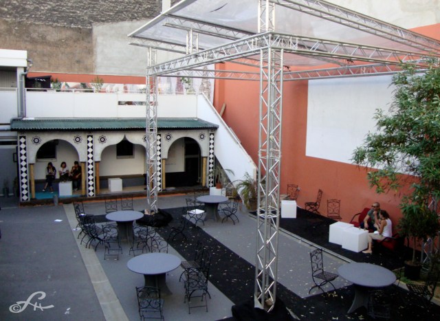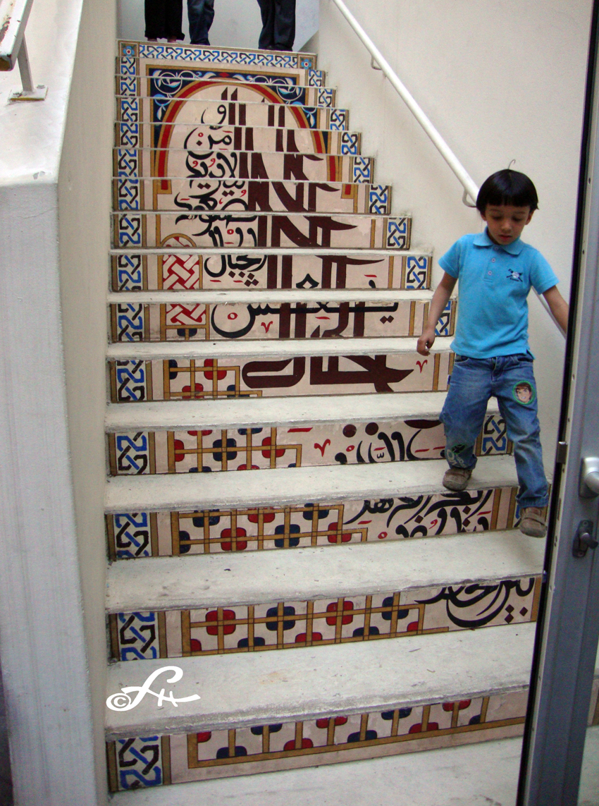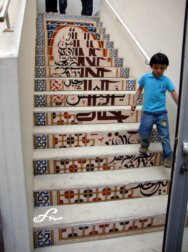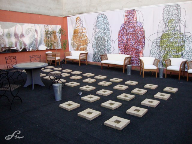 – sur la terrasse au même niveau, une installation collective réalisée par Mehdi Moutashar et Reza Abedini.