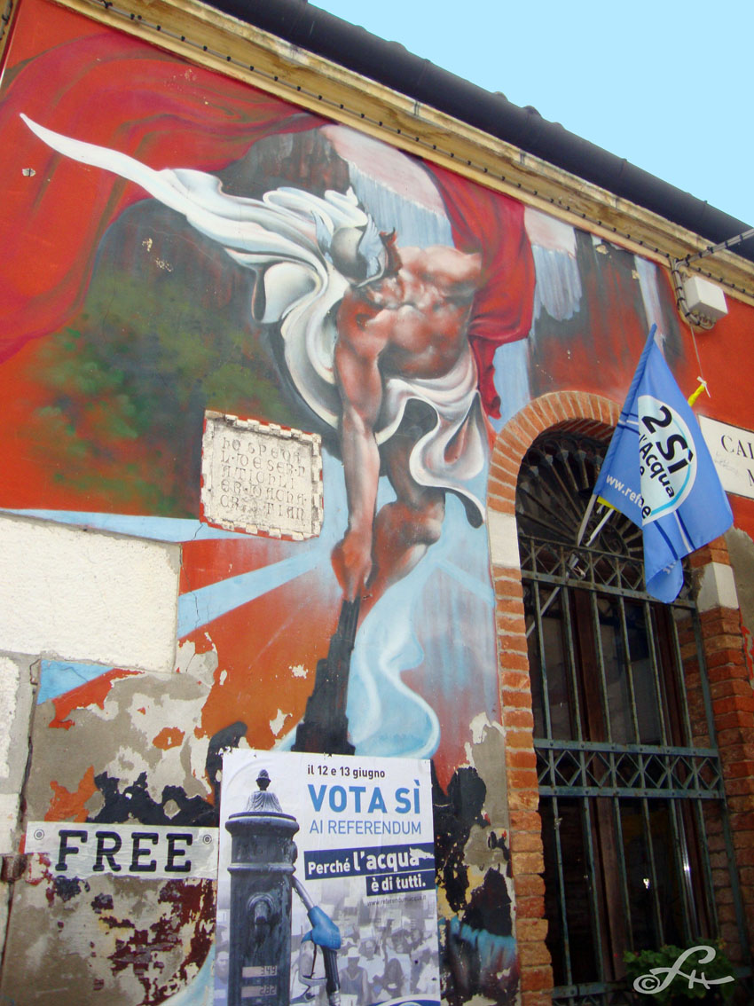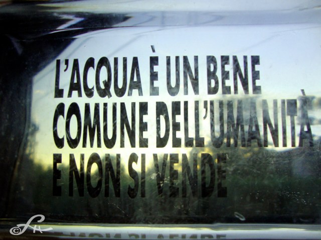 On pouvait lire partout sur les murs des villes couverts d’affiches, l’avertissement des associations civiles, le réveil, l’intuition divine du peuple italien. A l’occasion des 150 ans de la réunification de la péninsule, et la célébration de la naissance d’une République nationale et démocratique, des drapeaux tricolores étaient accrochés aux fenêtres des maisons dans la région environnante du Veneto, signe de fierté et pour certains, de résistance, de vigilance ! Un sain esprit a soufflé les 11 et 12 juin sur la péninsule, celui de la raison. La presse italienne a souligné cet infléchissement appuyé de l’opinion, et avance la fin du « berlusconisme », por fino ! Début de nettoyage, de l’eau, de l’eau pour faire barrage aux appétits carnassiers des uns, et mortifères pour la société humaine…