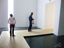 d’épure, comme une cure, un rafraîchissement dans ce parc d’exposition des Giardini, un endroit vraiment désuet et assoupi, même en temps de Biennale, comme figé dans l’architecture néo-classique, moderne ou Art Déco des pavillons nationaux qui sont disposés d’une manière assez labyrinthique entre des massifs et des allées d’arbres immenses.