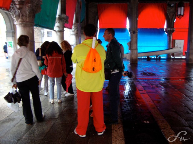Impossible de passer quelques jours à Venise, destination Number One du tourisme mondial, sans se retrouver immergé dans la foule composée de visiteurs lambdas et débarquant des quatre coins de la planète – et sûrement de plus loin encore ! D’ailleurs lapartmanquante en reportage a repéré quelques habitants de Vénus arpentant régulièrement la Place Saint Marc… Ainsi Venise est l’épicentre du bizness touristique, le monde du rêve sur papier glacé, l’archétype de la séduction carte postale. Ses masques et son carnaval, l’évocation d’un week-end en amoureux dans la Sérénissime sont eux-même des clichés très persistants ! Mais comment, sur place, ne pas être impressionné AUSSI par cet incessant flot d’humains attirés par la beauté sidérante et l’aura de mystère que dégagent la cité lacustre, la lagune et ses îles ?…