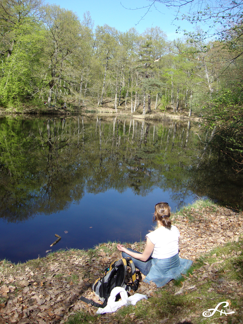 Nous avons trouvé un de ces lieux sur-réels, baigné par une lumière qui anime les objets et les êtres de l’intérieur. Un calme olympien, une énergie vitale y circulent de partout. C’est quelque part dans la forêt de Rambouillet, ou alors est-ce ailleurs dans le Gard ? Il y a toujours une source, un petit étang qui, parfois comme certains miroirs, réfléchit beaucoup. C’est la mare Vilpart, un endroit de nulle part, celui qu’on a traversé en rêve au moins une fois. Le plan d’eau semble s’auto-générer, on l’imagine certainement situé au point de résurgence d’un courant tellurique puissant ! Fond de scène immémoriale, rémanence d’anciennes cérémonies druidiques, il s’y noue dans
