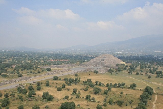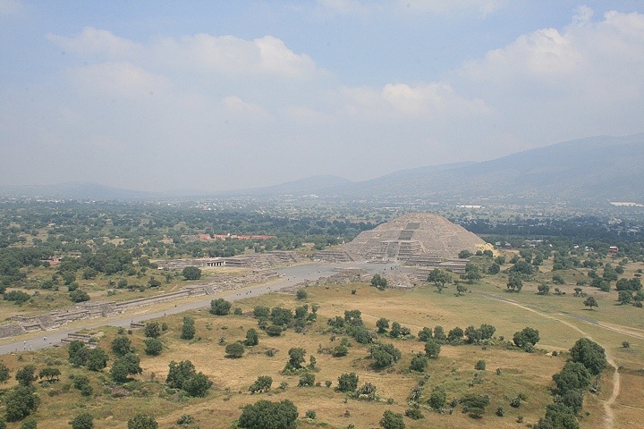 Bâtie vers 100 après J.C., la pyramide du Soleil est la troisième pyramide du monde par la taille, après celle de Cholula à Puebla et de Kheops en Égypte. Contrairement à beaucoup d’autres pyramides mésoaméricaines, elle a, pour l’essentiel, été construite d’un jet. Son avant-corps constitue la principale adjonction ultérieure. Le temple de bois et de chaume qui occupait son sommet a disparu. (source Wikipedia)