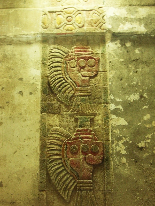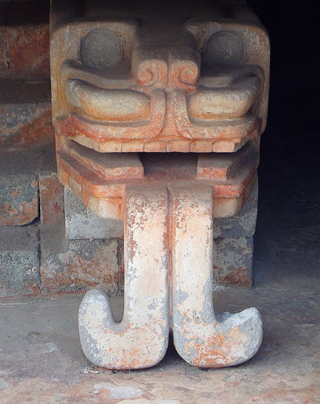 Oiseau vert crachant de l’eau, temple des Conques à Plumes (sous le palais de Quetzalpapalotl)