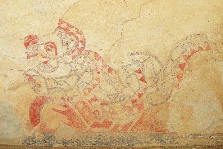 Singe, fresque du complexe du palais de Quetzalpapalotl
