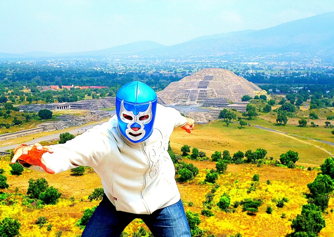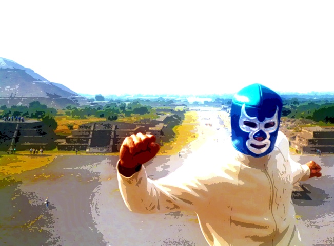 Cette première bataille fut un succès total ! Il a suffit à BlueRey d’une pichenette pour atomiser les 120 000 démons invisibles qui se sont précipités sur le site de Teotihuacán dès que la nouvelle de son atterrissage s’est répandue… Le combat s’est déplacé de la Pyramide du Soleil à celle de la Lune, avec de magnifiques vols planés, vrilles et loopings que malheureusement lapartmanquante n’a pas été en mesure de filmer tant la vitesse des déplacements était rapide : elle pouvait parfois dépasser deux fois la vitesse de la lumière… Ce fut le moment crucial de la bataille, un véritable feu d’artifice ! Mais voici un extrait d’un duel au sol, dans l’enceinte de la citadelle de Quetzalcóatl, qui montre comment BlueRey a su mettre en déroute l’Armée des Ombres Transparentes, grâce à ses prises magiques, sa fougue cosmique et ses tactiques de combat ninja, qui ont tant de fois fait leurs preuves !