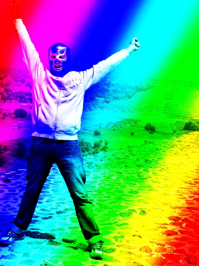 Impressionnant, non ? Et pour conclure cette victoire éclatante, BlueRey a reçu une douche régénérante Arco–iris–arcobaleno–arc–en–ciel venue des tréfonds de la Constellation de la Virgen de Guadalupe, d’où il voyagea jusqu’à nous dans un éclair bleu fulgurant.