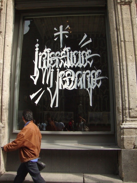 Chaz Bojórquez, vitrine de l’exposition « Intersticios urbanos » (verso)