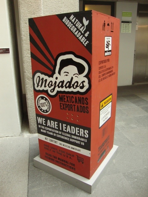 Ana Santos, avec son projet « Se vende migrante », a disposé deux de ses sculptures/caisse de-transport-pour-migrants dans le patio. Son travail, en plus d’être soigné et original, prend toute sa résonance dans ce parcours artistique. On sent bien ici que l’art urbain rejoint la demande de reconnaissance et de dignité d’une grande part oubliée de la population mondiale.