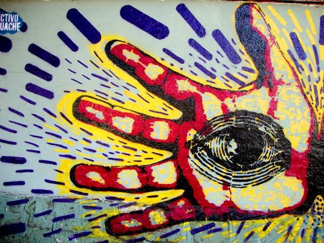 Qu’en reste-il 6 ans plus tard, après ce conflit social intense qui a duré 6 mois, réprimé dans la force et étouffé ? Les rues de Oaxaca sont redevenues calmes, les touristes affluent à nouveau et la région retrouve un taux de remplissage des hôtels équivalent à 2005. Beaucoup d’expatriés gringos ou européens s’y sont réinstallés. Les émeutes semblent oubliées aujourd’hui, mais les murs parlent encore. Même si la plus grande partie des grafitis, murales et esténcil (pochoirs) révolutionnaires ont été effacés, on peut voir certaines fresques qui ne vont pas dans le sens du poil. Et les collectifs d’artistes existent toujours et sont actifs. Ainsi ces murales sur la façade de l’institut linguistique dont vous pourrez voir la totalité dans le diaporama et dont est issue la première photographie ci-dessus. C’est un projet officiel initié par le service culturel du gouvernement régional datant de 2011, qui a tout de même obligé les artistes a temporiser leurs messages, une forme de récupération qui ne laisse pas au collectif Lapiztola le meilleur souvenir semble-t-il. Mais les œuvres restent fortes, et on retrouve dans ce projet collectif beaucoup de signatures ayant participé aux événements de 2006.