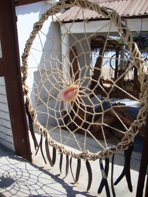 Lorsque que je suis entré dans son atelier en plein air, le patio il finalisait une commande. Une dizaine de “puertas atrapasueños”, version géante des catch dreamers amérindiens. Il a installé la première, comme la toile d’une araignée mutante à l’entrée de son hôtel, ce qui a attiré l’attention de nombreux habitants du coin. Il suffit de la faire pivoter pour se glisser dans son univers.