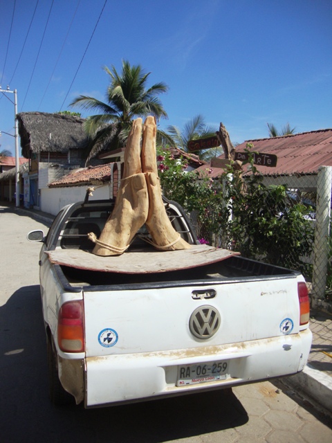 Tuto est capable aussi de tout vendre, sculptures, meubles et objets usuels compris, afin de ne garder que son matériel, chargé à l’arrière de sa camionnette et de repartir pour de nouveaux horizons. Il projette ainsi de se rendre dans quelque temps au Pérou, et de là suivre le cours du fleuve Amazone jusqu’au delta brésilien. Souhaitons-lui bon vent, feu, eau pure et bois flottés à profusion ¡ Ojale que vaya bien!