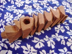 avec la saison des pluies et charrient des énormes troncs déracinés, qui viennent ensuite encombrer le lit des rivières, séchant parfois là pendant plusieurs années ce qui les rend plus compacts et intéressants à travailler. Allergique à quatre espèces d’arbres locales, Tuto préfère travailler uniquement le Huamuche, un bois légèrement rose qui rougit au soleil. Pour le récupérer, il part avec camionnette, cordes et tronçonneuse et se démène seul pour remonter de fortes pentes des morceaux de bois pouvant faire plusieurs dizaines de kilo. Il se débrouille d’ailleurs toujours pour que la sculpture un fois finalisée, il puisse la transporter lui même à la force des bras, comme pour mieux étreindre ses œuvres dans un ultime abrazo (hug, étreinte) ; les plus grandes dépassent donc rarement sa taille.