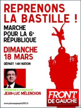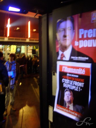 Mais juste après mon retour, il y a eu la « prise de la Bastille » le 18 mars de Jean-Luc Mélenchon avec le Front de Gauche, et là les choses ont véritablement décollé, après avoir commencé à vibrer autour des cercles du Parti Communiste et de l’Huma, de la gauche radicale avec ses relais médiatiques, puis dans les médias alternatifs et/ou indépendants type Mediapart. De ce point de vue uniquement médiatique, le tribun des forces de gauche – qui a toujours tenu le même discours tout en devenant la terreur des journalistes – a créé la surprise en prenant la place du « troisième homme » dans les sondages. Tout d’un coup, de nombreuses rédactions jusqu’alors sourdes et aveugles à ses discours, de celles qui ne lui accordaient qu’un regard amusé mêlé de condescendance (assorti par là d’un fort mépris pour tout l’espoir qu’il suscite auprès des milliers de militants et partisans du FdG, toujours plus nombreux) ont commencé à réajuster le tir pour finalement lui consacrer leur Une ces derniers jours… Mélenchon fait même vendre le Figaro, quelle ironie !