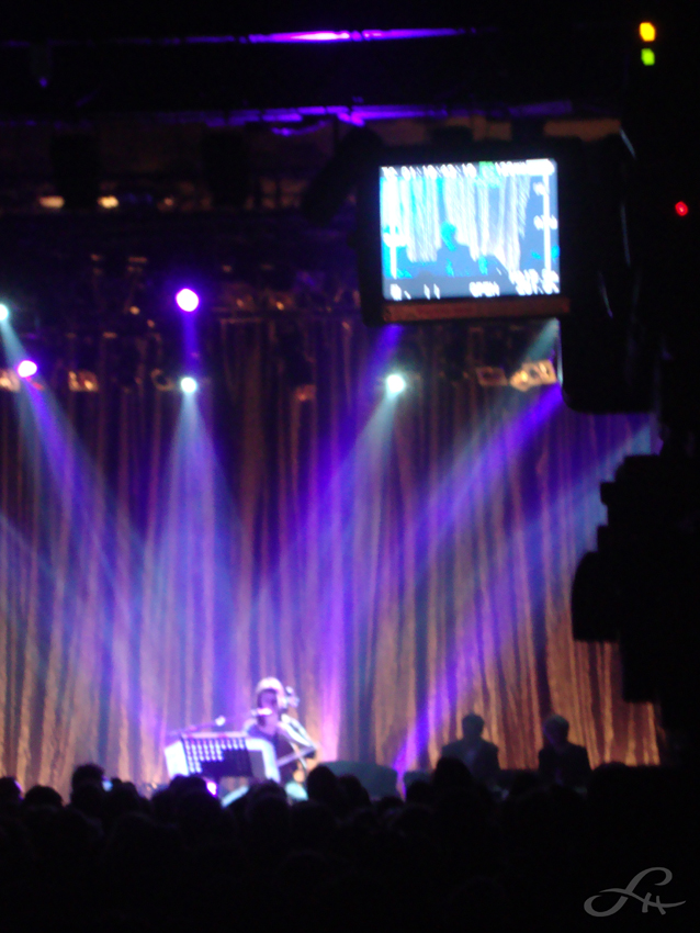 En attendant je me place derrière le paravent de trépieds et de caméras, face à la scène, entre le bar derrière et le parterre devant. La salle est remplie, mais pas bondée et irrespirable comme dans le RER à l’heure de pointe. Au contraire on sent une foule souple et impliquée à la foi, des habitués des salles de spectacle ; c’est simple il n’y a pratiquement là que des représentants des professions ayant trait la culture, des poètes du quotidien, des rêveurs, des bobos et des ouvriers du livre, des techniciens de l’audiovisuel… Bref, que des « gens bien », mais pas triés sur le volet, au milieu desquels je me sens à l’aise ; ça tombe bien, j’ai l’intention de rester ! Mais comment ont-ils fait tous pour conserver, dans ce monde impitoyable, une bonne dose de tolérance, de savoir vivre et de philosophie (il en faut pour survivre dans tous ces métiers) ? Le yoga ou la pratique artistique peut-être…