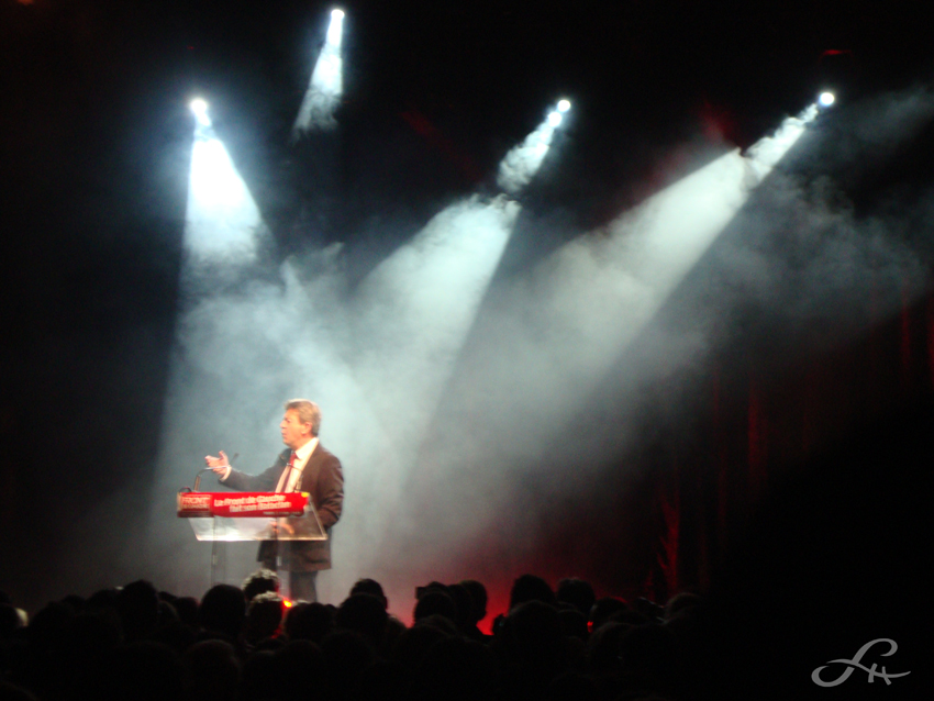 Je me rends compte que j’ai été bien long pour décrire le déroulement de cette soirée exceptionnelle, mais la qualité des interventions méritait de faire dans le détail. Aussi je ne développerais pas trop le discours de Mélenchon ce soir-là (Ooooohh), sur lequel la plupart des journalistes présents et assermentés s’est concentré, toutes caméras tendues, et dont vous trouverez le compte-rendu facilement sur le net, ici ou là par exemple. J’ai retenu cependant (outre sa rhétorique pour remettre l’humain au centre du projet de société, associer les citoyens à toutes les formes de création comme base de la