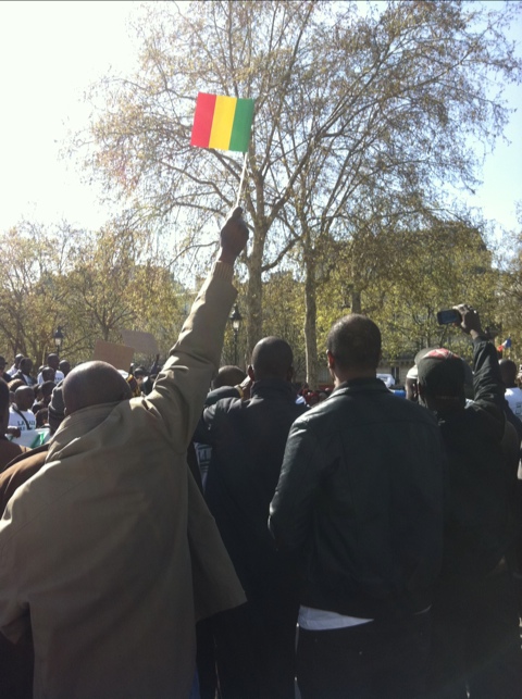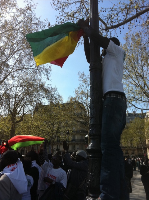 En tout cas, de nombreux Maliens vivant à Paris et en région parisienne se sont retrouvés spontanément ce dimanche 1er avril 2012 Place de la Bastille, pour dénoncer le coup d’état du général Sanogo et demander des garanties démocratiques aux putschistes (ce qui n’est pas du tout certain). Environ 800, ils étaient motivés et organisés, unis dans l’affirmation d’une seule nation malienne avec ce slogan sur les T-shirts « LA PAIX AU MALI, UN PEUPLE, UN BUT, UNE FOI » et une grande banderole proclamant « CONDAMNATION DU COUP D’ÉTAT & RETOUR DE LA DÉMOCRATIE », tandis que les drapeaux maliens aux couleurs rasta vert/jaune/rouge, celles aussi de l’Afrique, fleurissaient un peu partout.