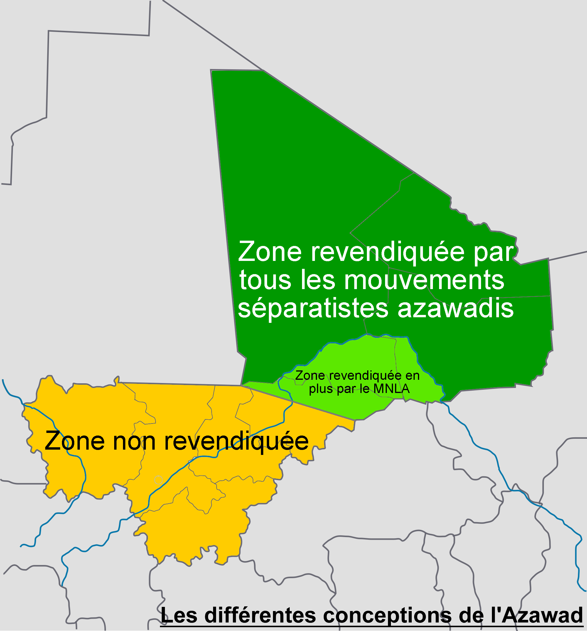 Ce Mouvement autonomiste et laïque, le MNLA est appuyé désormais par des éléments islamistes radicaux : l’AQMI (Al-Qaida Maghreb Islamique, issue des sectes salafistes repoussées d’Algérie et qui opère aussi actuellement en Mauritanie et au Niger) ; et Ansar Dine, commandé par Iyad ag Ghaly, également prônant un islamiste radical mais ayant d’autres intérêts que l’AQMI. La situation est devenue très complexe dans la partie nord du Mali, entièrement