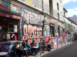 Belleville fut même, de 1789 à 1860, la plus grande commune (au sens premier du terme) autonome, limitrophe de Paris, qui regroupait le 19ème et le 20ème arrondissement actuels. On y venait déjà s’encanailler et boire le vin de ses vignes (situées sur l’actuel parc de Belleville), moins taxé que dans l’enceinte de Paris. La réputation bohème de ce quartier resté bucolique (et un peu alcoolique..) jusqu’à l’après-guerre n’est plus à faire. Moins réputé que Montmartre, il a commencé à attirer les artistes plus tard, dans le courant du 20ème siècle, du fait de ses loyers très modérés et de ses ateliers disponibles. Son histoire en tant que village populaire s’efface peu à peu, car il se boboïse à vitesse accélérée depuis 20 ans. Les artistes n’ont pas quitté le quartier pour autant. Au contraire, des galeries d’art contemporain, chic et arty en on fait leur eldorado.