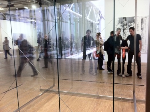 Certaines photos sont floues ? C’est un effet artistique qui répond au floutage de nombreux portraits exposés, et qui veut avant tout rendre une impression d’ensemble. Je vous invite à aller voir de visu l’exposition, car rien ne vaut la fréquentation des œuvres (réelles pour le coup) ; une reproduction dans le meilleur des catalogues n’arrivera jamais à en rendre la vibration. Les effets de diffraction rendus par les reflets des sculptures en verre s’expérimentent également en live :