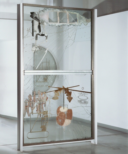 Pour répondre à Marcel Duchamp, suite à une rétrospective en 1965 de celui qui a bouleversé l’art (et le regard) dans les années 1910 avec ses ready-made et « la fin de la peinture », Gerhard Richter affirme que l’aventure picturale n’est pas terminée, même encore aujourd’hui au XXIème siècle. En citation au Nu descendant un escalier de Marcel Duchamp (1913), il peint en 1966 Ema (Nu sur un escalier) d’après une photographie qu’il a lui-même fait de sa femme, avec un rendu sensuel et chatoyant. Il fait un autre pied-de-nez, avec ses grandes sculptures en verre, commencées dans les années 60 puis reprises dans les années 2000, qui sont autant de réponses au Grand Verre de Duchamp.