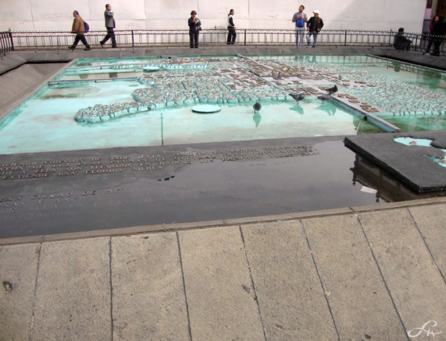 Cités-palimpsestes, les villes coloniales espagnoles pouvaient se superposer aux plans des anciennes villes indiennes : tracées au cordeau, celles-ci furent pourtant écrasées par les conquérants, entrainées dans l’oubli et les abysses du temps. Ce fut le cas à Mexico City, puisque la grande place centrale du zócalo fut aménagée sur les décombres du Recinto sagrado (enceinte sacrée) des Aztèques. Il comprenait une grande pyramide au nord, le Templo Mayor, dédié à Huitzilopochtli et Tlaloc, respectivement dieux de la guerre et de la pluie, qui fut rasé tandis qu’à quelques mètres s’édifiait progressivement la nouvelle cathédrale des chrétiens.