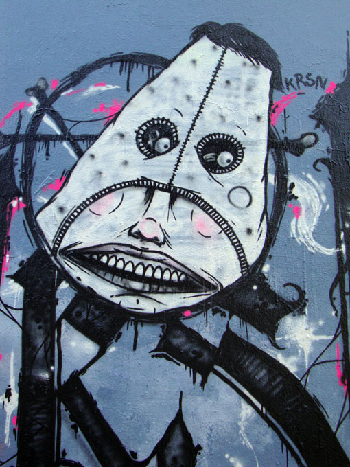 On y retrouve la patte de KRSN et JSPZ qu’on a pu voir respectivement sur le mur de la rue Ordener et le spot quai de Valmy. C’est ainsi que les styles des différents artistes et crews deviennent familiers aux habitants des quartiers nord de Paris. Certains y gagnent reconnaissance et admiration, au point que souvent, lorsque je photographie une œuvre murale, un ou une passante m’interpelle en me disant « ça c’est de l’art ! » Et ajoute qu’il faudrait plus d’espaces pour que ce travail artistique se développe et s’inscrive durablement dans le paysage. Oui, plus d’ emplacements dédiés à des œuvres contemporaines pérennes, faites par de jeunes talents prometteurs qui utilisent le langage direct et actuel du graffiti, du pochoir, du collage… Mais que fait donc la Ville de Paris ?!!