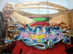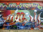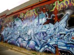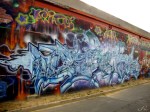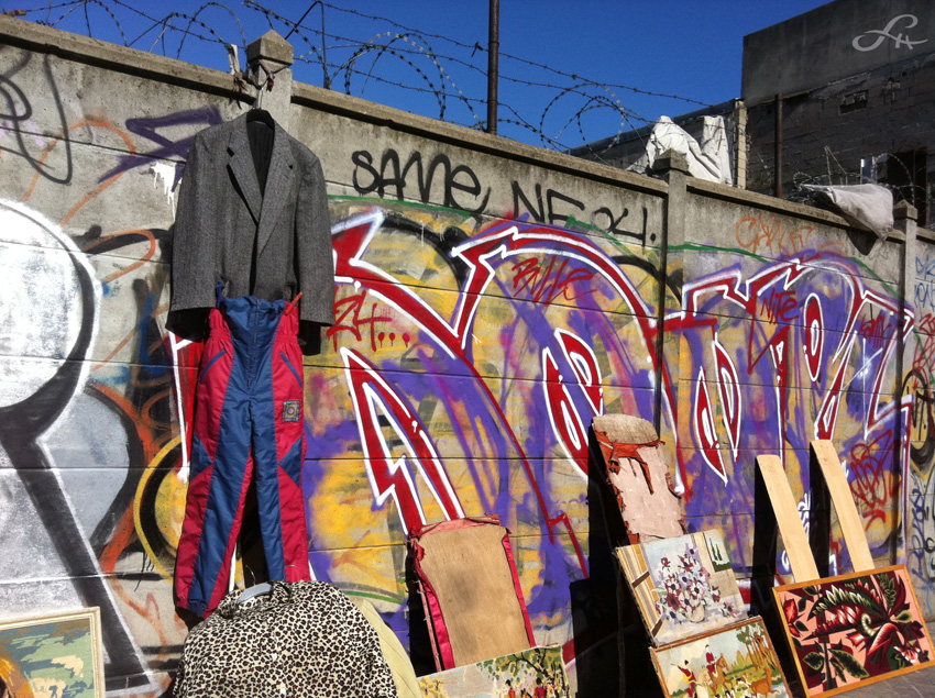 Le marché aux puces de Saint-Ouen mérite le détour pour les graffitis qui s’y affichent. Intéressant d’aller fouiner, de jeter un ou carrément deux yeux derrière les palissades, les murets en béton, parfois juste au dessus des articles déballés à même le sol. C’est même bien plus dépaysant et surprenant que de faire l’inventaire des boutiques de fringues, d’accessoires et de baskets qui accueillent les aventuriers du week-end, à l’arrivée de la porte de Clignancourt ; des magasins bien souvent interchangeables, parmi lesquels certains commerçants essaient tout de même de conserver ce qui a fait l’originalité et l’attraction de ce marché très populaire, sorte de grenier merveilleux de Paris, de France et de Navarre, jusque dans les années 70/80. On peut donc découvrir au pied des barres d’habitation ces compositions audacieuses et ces calligraphies bien stylées, que voici :