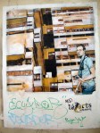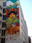 Du côté des grandes tours du quartier Jeanne d’Arc, le trompe l’œil de Folon réalisé en 1985 est une des première grande fresque urbaine dans ce quartier moderne, entièrement restructuré dans les années 1960/1970. Plus récemment, une belle fresque peinte, en hommage à la Pacha Mama a été signée par le collectif chilien Aner/Maher/Alapinta.cl (dans la galerie ci-dessus). Et un collage géant réalisé par Shepard Fairey en juin 2012 redonne des couleurs à une tour située sur le boulevard Vincent Auriol – à voir sur le très beau site un oeil qui traine, sur lequel on peut également découvrir d’autres œuvres de C215 sur les bords de Seine, ou naviguer bien plus loin que le 13e arrondissement de Paris…