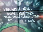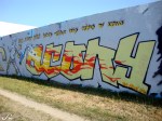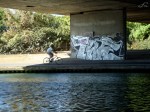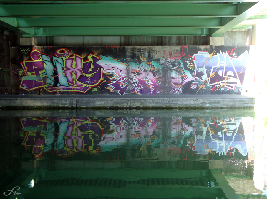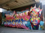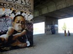 Cet été 2012, les rives du canal de l’Ourcq se sont garnies de nouveaux graffitis, plus audacieux et colorés les uns que les autres. De Pantin à Sevran, en passant par Bobigny et Bondy, voici une large sélection photo qui permet de vérifier, s’il le fallait encore, la vitalité de cette expression artistique dans le 93. Le canal de l’Ourcq reste en effet un spot favori et irremplaçable du Street art en proche banlieue parisienne, long de plusieurs kilomètres : une galerie horizontale et à ciel ouvert en constant renouvellement, un espace dynamique, poétique et dépaysant tout à la fois. Pour l’instant, la modernisation du Grand Paris n’a pas encore trop touché aux vieux murs de brique ou de béton, aux façades décrépies des hangars longeant le canal et sur lesquels s’affichent ces œuvres surprenantes, qui explosent de vitalité, de brutalité parfois, mais toujours de liberté et de créativité. Profitez-en !