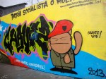 Monumental et éphémère, le portrait peint d’Hugo Chavez de la rue Ordener a trouvé sa place dans un des derniers quartiers populaires et mixte de Paris. Ce geste audacieux va sûrement susciter des réactions positives ou négatives, des tags, d’autres graffitis à même le mur. Car cette œuvre est emblématique de la culture subversive du street art : questionner, déranger la pensée unique et le formatage médiatique pour ouvrir des espaces d’expression libre !