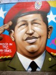 Haute en couleurs (avec en fond, le rouge, le bleu et le jaune du drapeau du Venezuela), la fresque hyper réaliste et graphique, longue d’une dizaine de mètres, est à la fois un clin d’œil humoristique et une marque de respect et d’admiration. Elle fait écho aux immenses portraits d’El Comandante, présents partout à Caracas et dans tout le pays. Malgré un culte de la personnalité assez caricatural, Hugo Chavez était énormément populaire et apprécié par la majorité des Vénézuéliens. Il était également le principal allié politique et économique de Cuba.