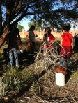 Dimanche matin de bonne heure, afin de commencer dans l’allégresse et de se rafraîchir au vue de la chaude et sèche journée se profilant, petits et grands enfants ont improvisé une bataille d’eau bien tonique ! Les artistes ont profité des dernières heures pour finaliser leurs œuvres, et vers 4h, après un repas de tortillas y ….. offert par la municipalité de la Zacatecana, un recorrido, une présentation a été donnée par chacun des artistes présents (sans oublier les enfants) de chacune des œuvres. Les habitants du village, sans aucune publicité, s’étaient déplacés en nombre. Rangement et nettoyage du lieu, gracias y adios… Cette expérience fut un succès artistique et public, et on attend avec impatience la prochaine édition !