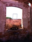 Chucho Reyes, inspiré par les nombreuses cheminées encore en place dans l’hacienda, a investi une grande salle sans toit, avec deux hautes fenêtres et une cheminée centrale. C’est dans celle-ci qu’il est intervenu à l’aide de branchages et de peinture, donnant l’idée d’une fugata (feu, flambée) surréaliste, al reverso, comme si la cheminée crachait ses branches. On pensait à l’installation trompe-l’œil de Salvador Dali, Mae West, car en regardant avec du recul la façade, on voyait un masque de géant…