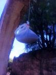 Adrian Ruis Esparza sacó provecho de un soportal largo para suspender de eso bolsas de plástico llenas de tierra, de ceniza, de desperdicios encontrados en el terreno.