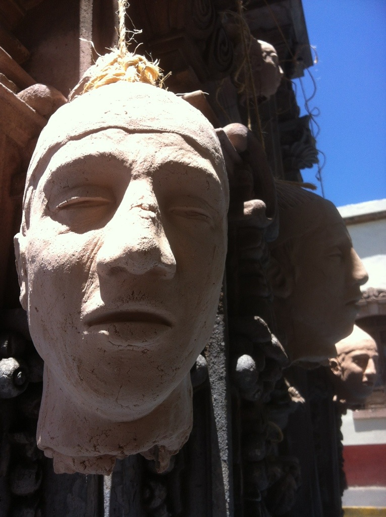 « Ubicada en la fuente de los conquistadores invita al diálogo, primero sobre el espacio; que escenifica lo que nos representa. Esta instalación en sitio especifico no es un reproche histórico a los conquistadores a que los que los homenajea la fuente; es en todo caso una mirada crítica sobre los iconos en la ciudad que habla de una identidad a medias, en una ciudad que ignora deliberadamente unas de sus partes esenciales. En segundo lugar, propone volver la mirada al tema de la identidad y pone el dedo en la yaga; porque si bien en el pasado los grandes chichimecas zacatecos fueron conquistados y desterrados de su lugar, actualmente los discursos invisibilizadores que neutralizan a los “otros” siguen siendo actos de violencia simbólicas que se repiten en los monumentos, las prácticas de formas de vivir y ocupar la ciudad.