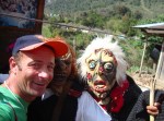 C’est sur le retour que les choses prennent un tout autre aspect, aidé par la dégustation du fameux poch, qui nous aida à rejoindre les habitants dans cet état de locuria et de desmadre qui accompagne cette fête de l’inversion, du retournement des valeurs et des identités. Nous nous sommes approchés puis fondu, à l’invitation d’un groupe de jeunes hommes bien emméchés et bien excités. quelques hommes sont travestis, dont un en vieille femme lubrique. D’autres sont déguisés en personnages ruraux, paillards ou effrayants. Toujours ces masques en plastique hideux made in China et pas de costumes traditionels merveilleusement ouvragés. Non, ce qui compte c’est de favoriser la convivialité avec force weeey. Accompagnés par quelques musiciens aux chapeaux circulaires, garnis de rubans multicolores, typique du Chiapas, les gars dansent et jouent ensemble comme dans une cour de récréation. Ils sont soutenus par les habitants curieux qu’ils croisent, qui s’agrègent et suivent la procession désordonnée jusqu’au prochain arrêt. Car le petit groupe carnavalesque va de maison en maison, où on offre du poch et de la bière. Ils viennent chasser les mauvais esprits avec leurs tronches de train fantôme, s’adonnent avec délice à la satire, principalement sexuelle, mimant des coïts avec la sorcière. En musique, ils boivent, déclament et chantent. Les enfants sont des spectateurs privilégiés et hilares, certains plus âgés peuvent aussi boire du poch s’ils le désirent. Un gamin me demande une cigarette, que je lui refuse et je me fais gronder par un cacique ; je comprends que c’est mal de refuser dans ces circonstances le moindre souhait infantile !