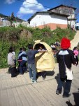 L’autre visage du carnaval de Tenejapa, peut-être le plus intéressant, en tout cas le plus improvisé et populaire, allait progressivement se montrer au grand jour. Des gars commencaient à faire de molles tentatives d’approches, des groupes d’écoliers nous apostrophaient (hey gringos, gueros !!..). Accompagnés d’un guide trouvé-sur-le-chemin, un papa sympathique et doux, nous visitons le cimetière à l’autre bout du petit village, histoire de se dégourdir les jambes. Un peu de mélancolie, la déception que l’ambiance du carnaval ne soit pas au rendez-vous…
