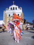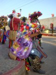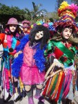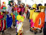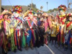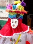 Pas rassasiés par Tenejapa, nous prenons donc le bus le dimanche matin et arrivons à Coita, à quelques encablures de Tuxla Guiterrez. Le carnaval zoque de Coïta (du nom du groupe culturel du Chiapas) dure entre 3 et 5 jours, et n’est pas connu des parcours touristiques internationaux ; mais beaucoup de mexicains se déplacent pour participer et jouir des festivités. Un photographe suisse, installé depuis des années à San Cristobal, m’en avait parlé, disant qu’il ne fallait pas louper cette débauche de costumes, haute en couleurs. C’est pour lui l’occasion de faire de beaux clichés, il ferme d’ailleurs boutique toute la durée du carnaval de Coita. Celui-ci est vraiment exceptionnel : avec ses dizaines de parachicos, des groupes de quatre ou cinq danseurs masqués et déguisés selon un thème commun, faisant les pîtres et parcourant les rues avec leurs grands chapeaux enrubannés et fleuris, ou juste recouverts d’un foulard multicolore.