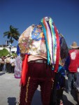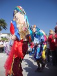 Là, nous assistons à une mise en scène plus savante et chorégraphiée, avec des guerriers aux longs sabres ensanglantés affrontant un cheval blanc enchaînant ruade sur ruade. Il finira par être sacrifié, signant la supériorité de l’humanité sur l’animalité. La tradition veut que pendant toute la durée du carnaval de Coita, des duels se succédent entre des personnages mythiques, conquistadores, et différents animaux comme le jaguar, le léopard, le tigre, le cheval, le taureau, le porc, etc… Les combats et processions sont bien réglés avec chaque jour, chaque moment, un ordre d’apparition. Le carnaval étant un moment d’inversion des rôles et de transgression, on peut imaginer la joie des indiens indigènes – dont la population est toujours très forte au Chiapas – de se travestir et de tourner en dérision les oppresseurs espagnols avec leurs masques, costumes et coutumes ! Car le carnaval tel qu’on peut le voir au mexique est avant tout une importation culturelle espagnole.