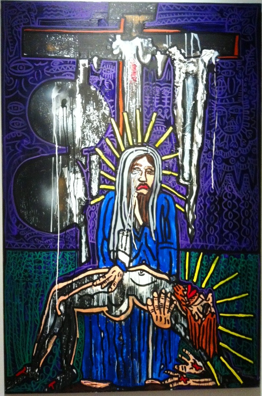 Chemin de croix, treizième station : Jesus est depose de la croix et remis à sa mère – Combas/Kijno – Technique mixte, 195 x 130 cm – Collection Ville de Lille