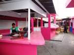 En me balladant à Puebla, capitale de l’état de Puebla, Mexique, j’ai fait la découverte du marché populaire de Xonaca. Ce marché un peu endormi et à l’architecture très kitsh date des années 50, avec ses box carrés et ouverts qui se succèdent d’une manière surréaliste, tous peints dans des tons acides. Il est situé dans un quartier légèrement excentré du centre historique. Les efforts de rénovation de l’ancienne Puebla, très étendue, n’ont pas touché ce quartier populaire. Par contre la politique de préservation des richesses barroques et coloniales sont à l’échelle du désir des autorités municipales de faire de Puebla, située sur l’axe Mexico City / Veracruz au sud du pays, et classée au patrimoine mondial de l’Unesco, une des premières destinations du tourisme culturel au Mexique.