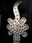 Le second, Quetzacoatl, est symbolisé par une spirale de caracol, une conque marine en coupe, mais aussi la virgula de la palabra, le glyphe de la parole qu’on retrouve aussi chez les Mayas, ou à Monte Alban à Oaxaca. Elle descend, pénêtre et c’est la rencontre de deux énergies. Le masculin, vertical, et le féminin, l’horizontal.