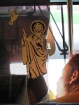 Des fétiches colorés et kitch, des porte-bonheurs, des amulettes fantaisies pour la bonne route, qui donnent au catholicisme ambiant des allures d’accumulation de superstitions plus que de système théologique cohérent…