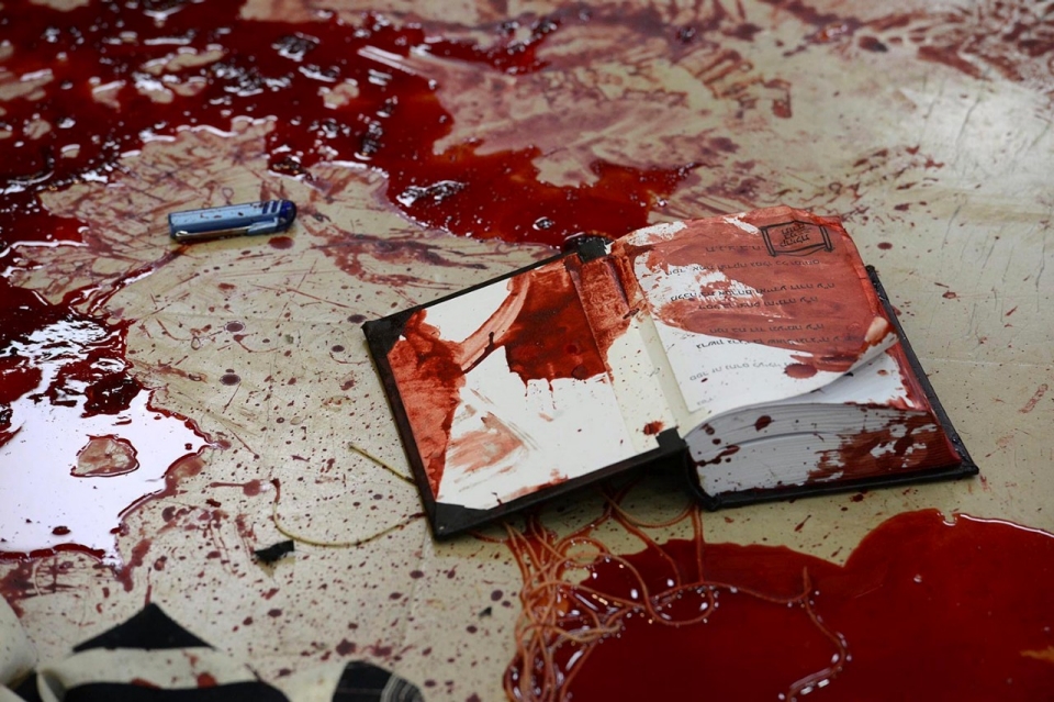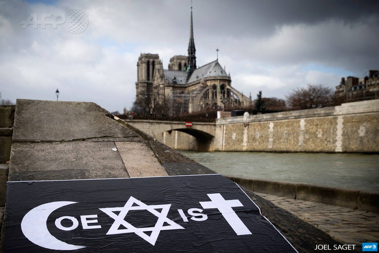 Installation en face de l’Institut du Monde arabe, Paris 2015 , Combo – AFP PHOTO / JOEL SAGET