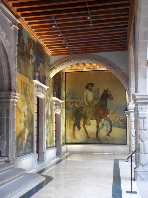 Dans la cour principale de l’édifice, le processus historique de la Révolution mexicaine avec ses personnages les plus emblématiques, se développe sur trois parties, chronologiquement et d’une manière narrative. On peut remarquer, en levant les yeux sur le mur du couchant, sur un fond gris, esquissés au crayon, une ébauche de quatre personnages durangueños, précurseurs du mouvement armé de 1910. Dans la partie supérieure se distingue le portrait du jeune Doroteo Arámbula Arango, futur Pancho Villa.