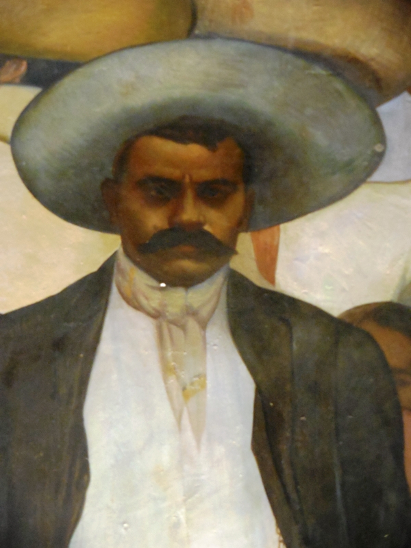 La fresque suivante montre un Emiliano Zapata de dimensions imposantes entouré par des représentants de la population, dont une femme portant un enfant dans les bras, un homme et deux enfants fascinés par le personnage, dans une attitude dévote. Zapata, réputé homme de conviction, vrai héros de la révolution, a été tué suite à une trahison selon un plan de Venustiano Carranza en avril 1919.