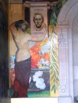 De part et d’autre de l’accès à l’escalier, deux allégories s’inscrivent sur un grand fond d’or, l’une avec la date de 1910, l’autre de 1913.