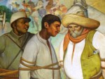 Immédiatement après se trouve une scène en couleurs, dans laquelle sont plantées les figures de Ricardo et d’Enrique Flores Magón , en train d’étudier un plan et prenant les armes à la tête d’un groupe de paysans. Les frères Flores Magón ont créé en 1906 le Parti Libéral, à un moment où, dans le pays, les premiers bourgeons de la révolution, prenaient la forme de violentes révoltes et de grèves. Ces mouvements à la fois populaires, anarchistes, nationalistes et socialistes naissaient du fait de la politique répressive de Porfirio Díaz (le “Porfiriat”) devenue insupportable.